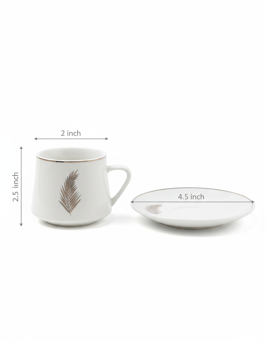 Savor a moment of quiet grace with the *Leaf Whisper* cup and saucer. This fine ceramic set features a single, beautifully delicate leaf motif and a subtle silver trim, embodying minimalist elegance and refined simplicity.