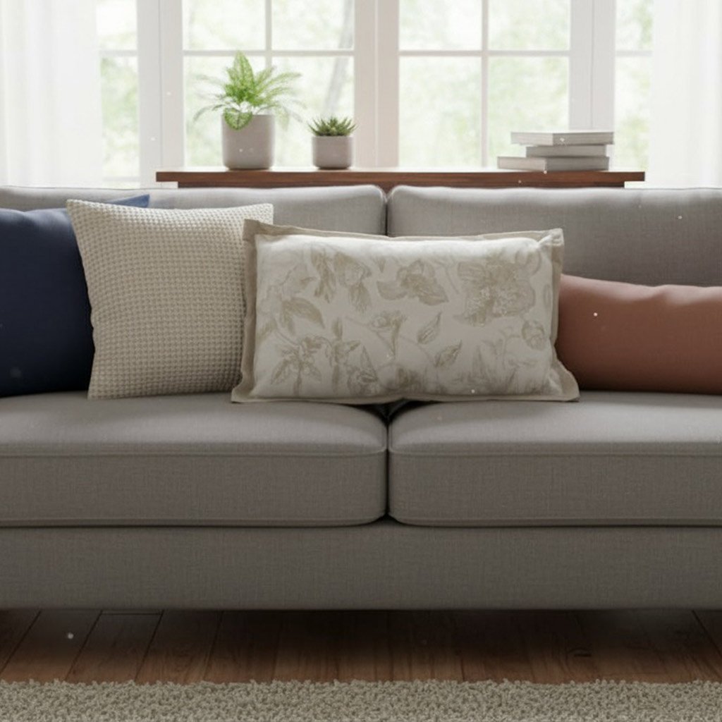 Introduce timeless beauty with the Monarch Rectangle Bloom Cushion. This pillow features a classic, subtle toile-style floral motif in soft beige tones on an ivory background, offering an elegant and romantic accent for your home.