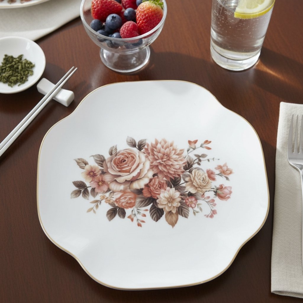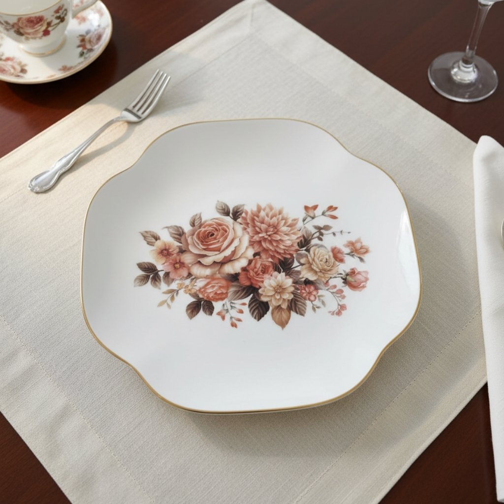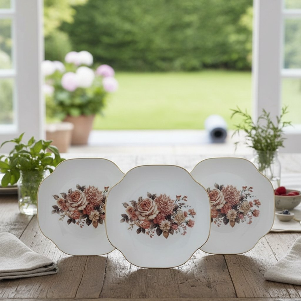 The Pink Paradise Quarter Plate is a charming and delicate piece, perfect for serving appetizers, desserts, or small side dishes. Crafted from elegant Bone China, this smaller plate features a translucent white body adorned with the signature Pink Paradise pattern—a beautiful, intricate design of pink floral blooms, green foliage, and delicate butterfly motifs. The exquisite fine china quality and vibrant design bring a touch of timeless, romantic luxury to any course.