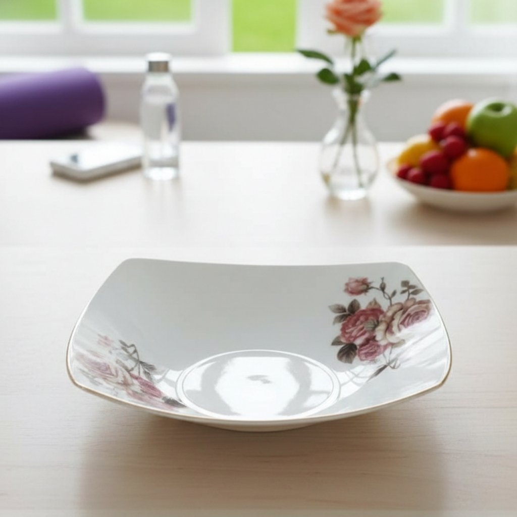 The Pink Paradise Serving Bowl is an exquisite piece perfect for serving large portions of side dishes, salads, or fruit with romantic elegance. Crafted from luxurious Bone China, this bowl features a deep, generous size and a translucent white body adorned with the signature Pink Paradise pattern—a beautiful, intricate design of pink floral blooms, lush green foliage, and delicate butterfly motifs. The fine quality of the Bone China ensures this serving bowl is both durable and a beautiful centerpiece for any table setting.