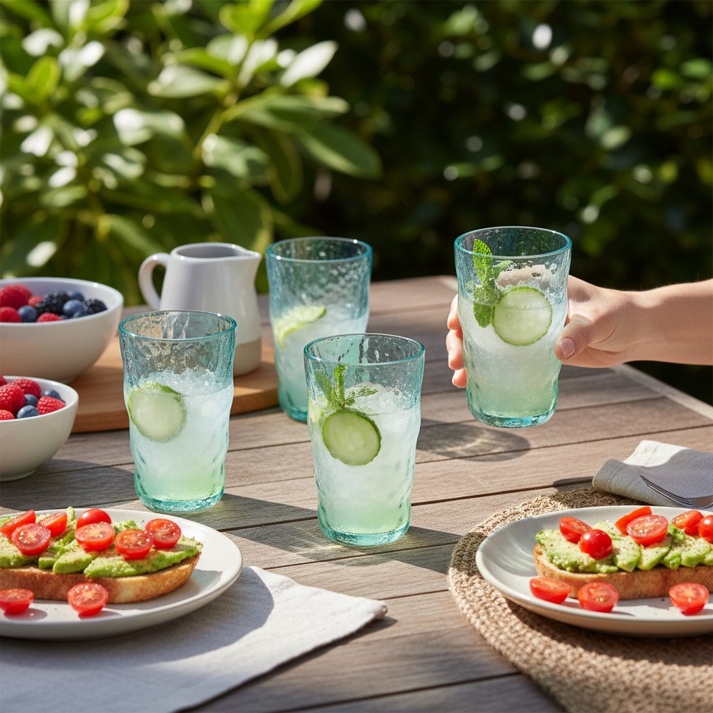 Bring a touch of the ocean to your table with the Seafoam Ice Glass Set. These vibrant tumblers feature a cool blue-to-white ombre finish and a striking “ice-like” organic textured design, perfect for serving beverages with a fresh, modern aesthetic.