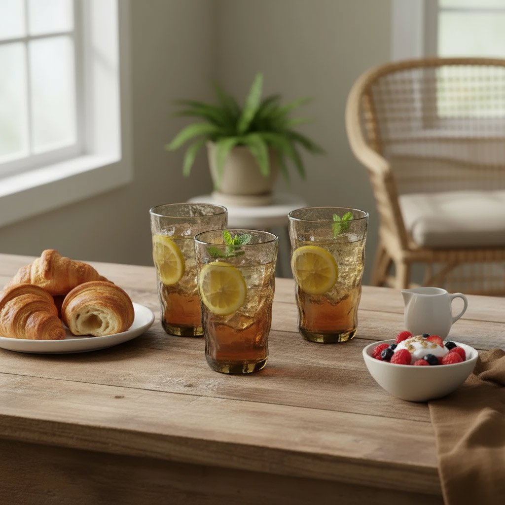 Serve drinks with warm, moody style using the Sepia Glass Set. These unique tumblers feature a captivating smoky brown color and a rugged, organic textured finish, perfect for elevating your cocktail or spirits service.