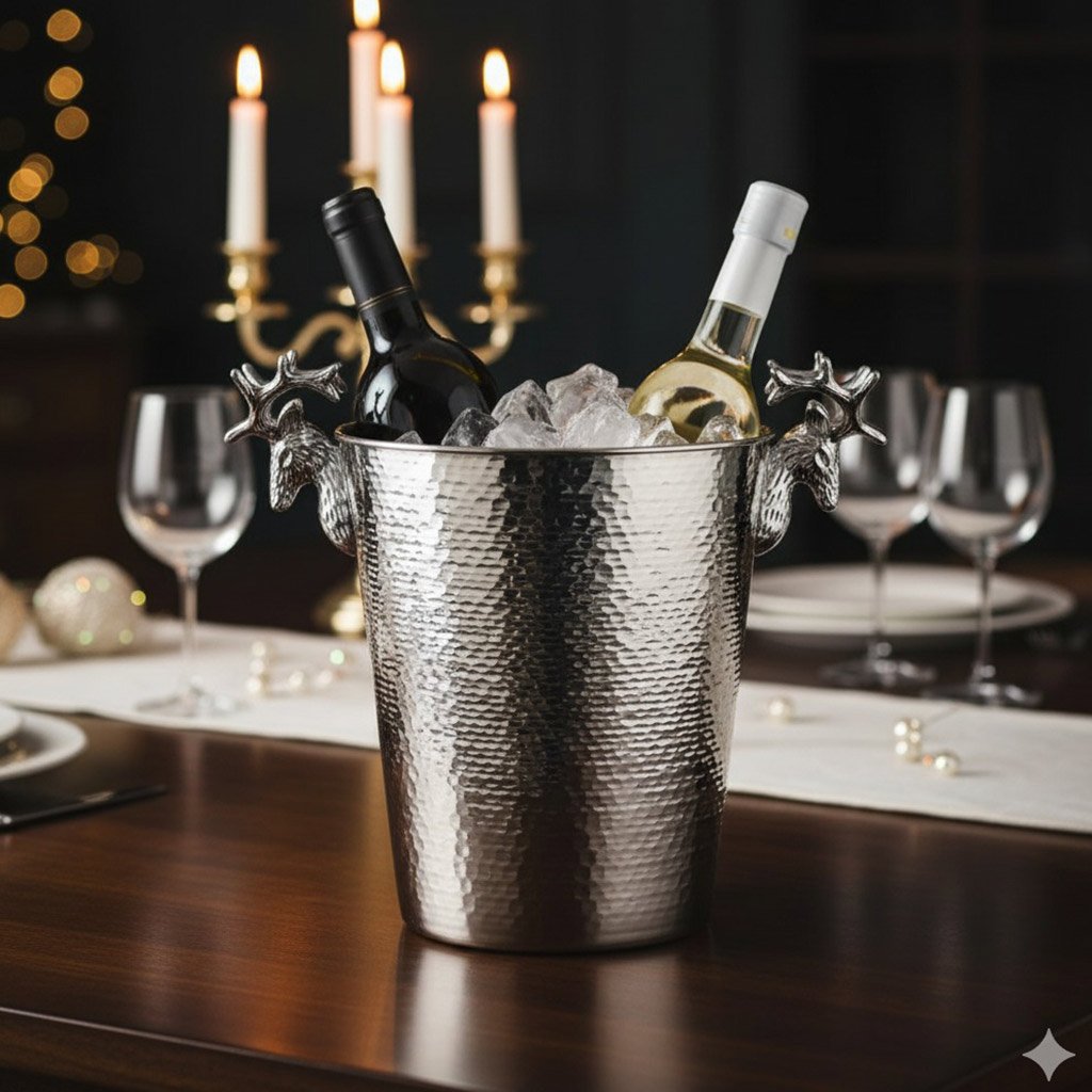 Host your holiday celebrations in stunning style with the Silver Reindeer Ice Bucket. This luxurious piece features an elegant silver finish and beautifully sculpted reindeer handles, adding a majestic, festive touch to your barware. It’s the perfect statement accessory for keeping ice chilled throughout the season.