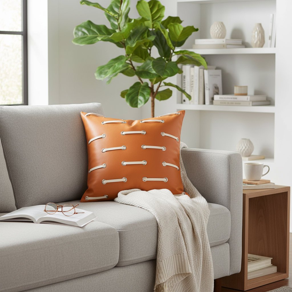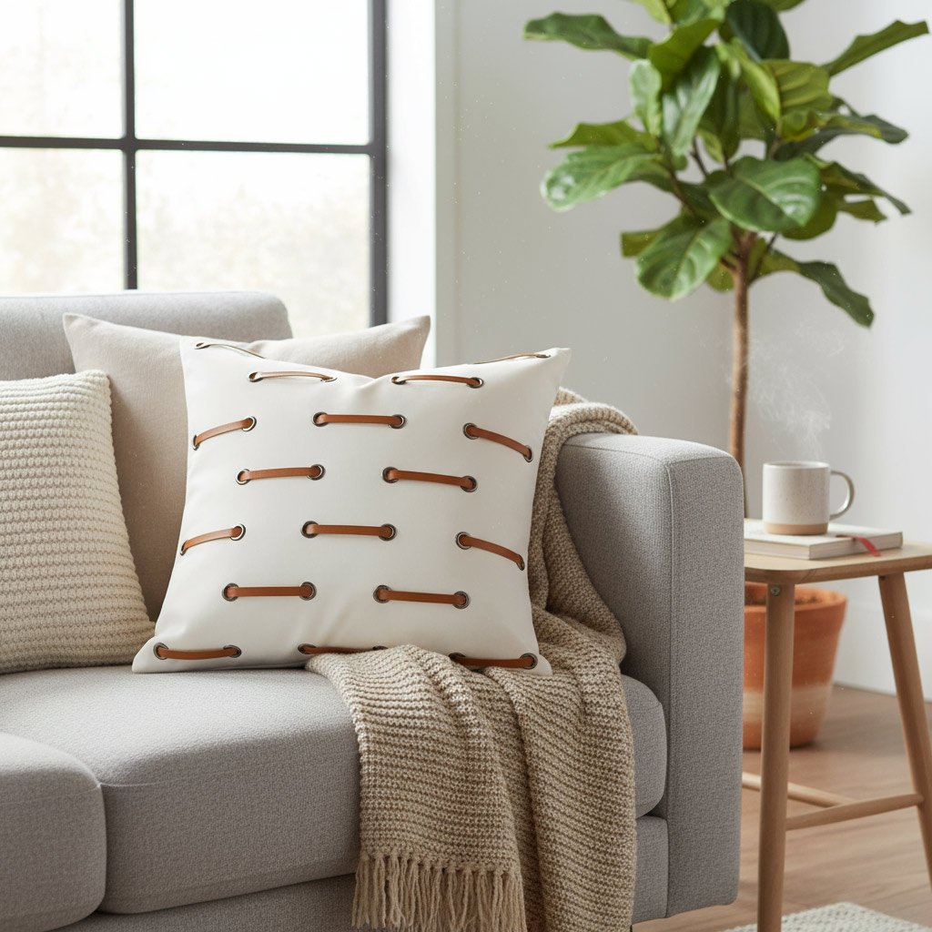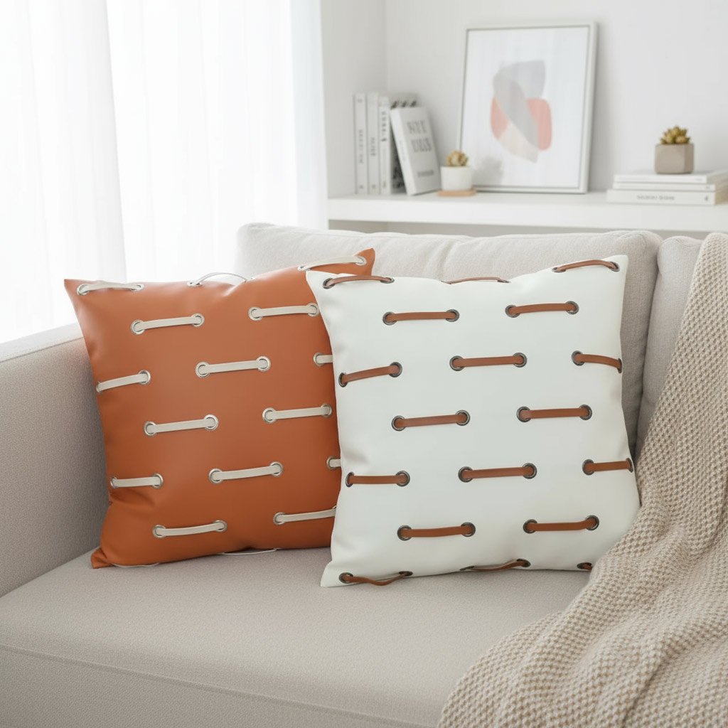 The Toggle Loop cushion cover is defined by its clean lines and contrasting colors. Its inventive, symmetrical pattern offers a fresh take on modern design, providing a fun and sophisticated accent piece that looks great on both a couch and an armchair